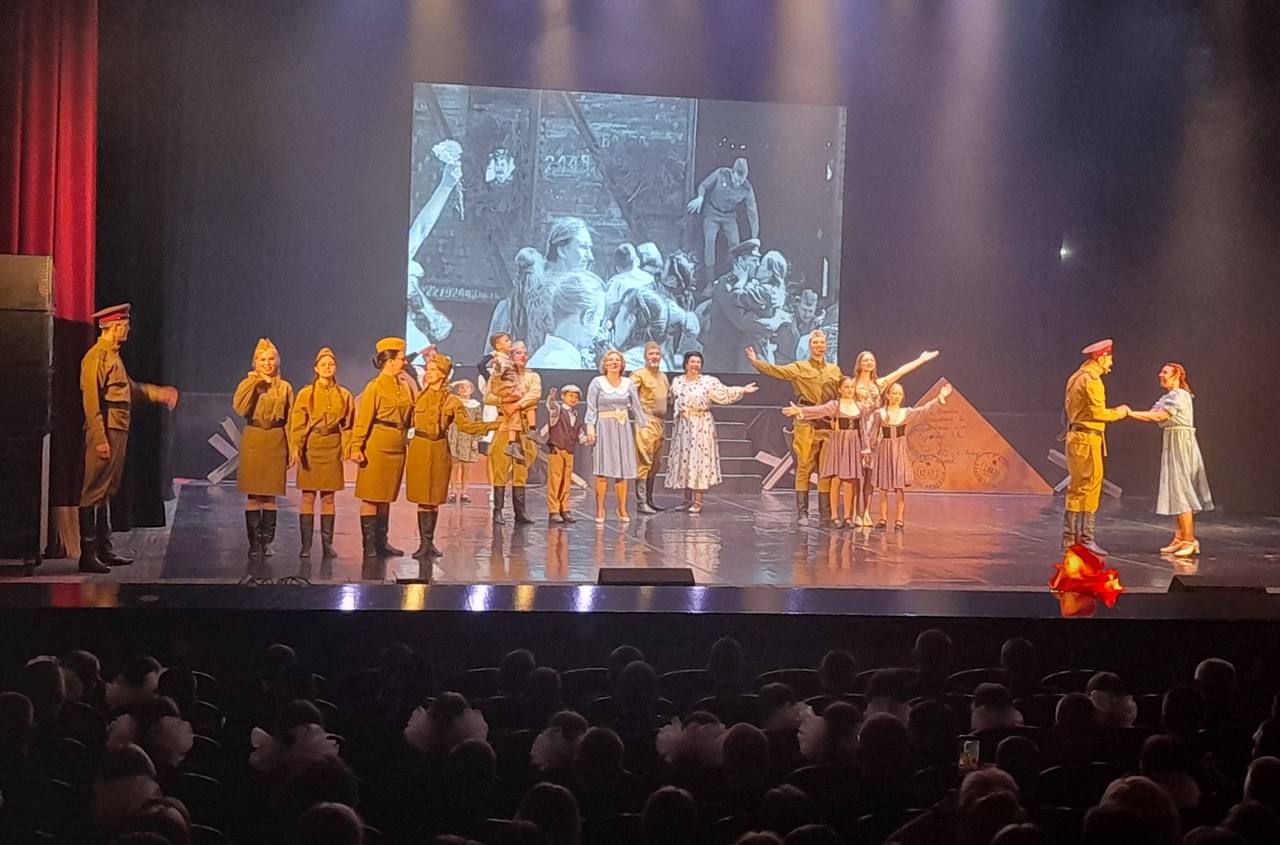 После открытия выставки кадеты и их наставники отправились во Дворец культуры рыбаков, где побывали на проекте «Путь к Победе», посмотрев музыкальный патриотический спектакль «Эшелон Победы», ставший данью уважения не только героям Великой Отечественной воны, но и действующим защитникам, участвующим в специальной военной операции.